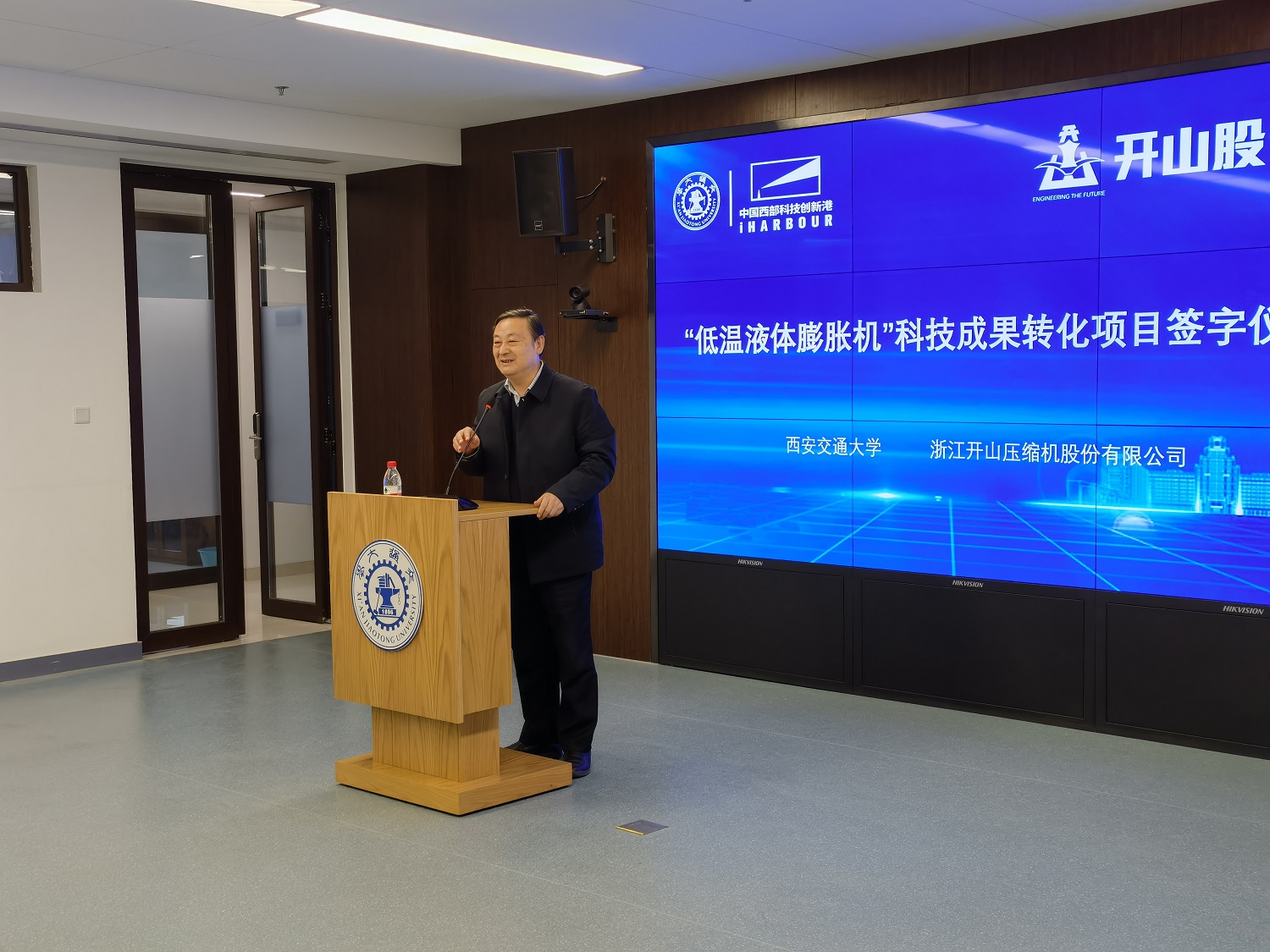 12月23日下午,在西安交通大學副校長王鐵軍和浙江開山壓縮機有限公司董事長曹克堅見證下,西安交大科研院常務副院長黃忠德與開山壓縮機公司副總經(jīng)理楊建軍分別代表雙方簽署“低溫液體膨脹機”科技成果轉化項目協(xié)議書。雙方將在西安交大創(chuàng)新港設立由開山股份控股的創(chuàng)新平臺公司——開山透平有限公司(KAISHAN TURBOMACHINERY CO.LTD.),旨在研發(fā)包括低溫液體膨脹機”在內(nèi)的透平機械產(chǎn)品。